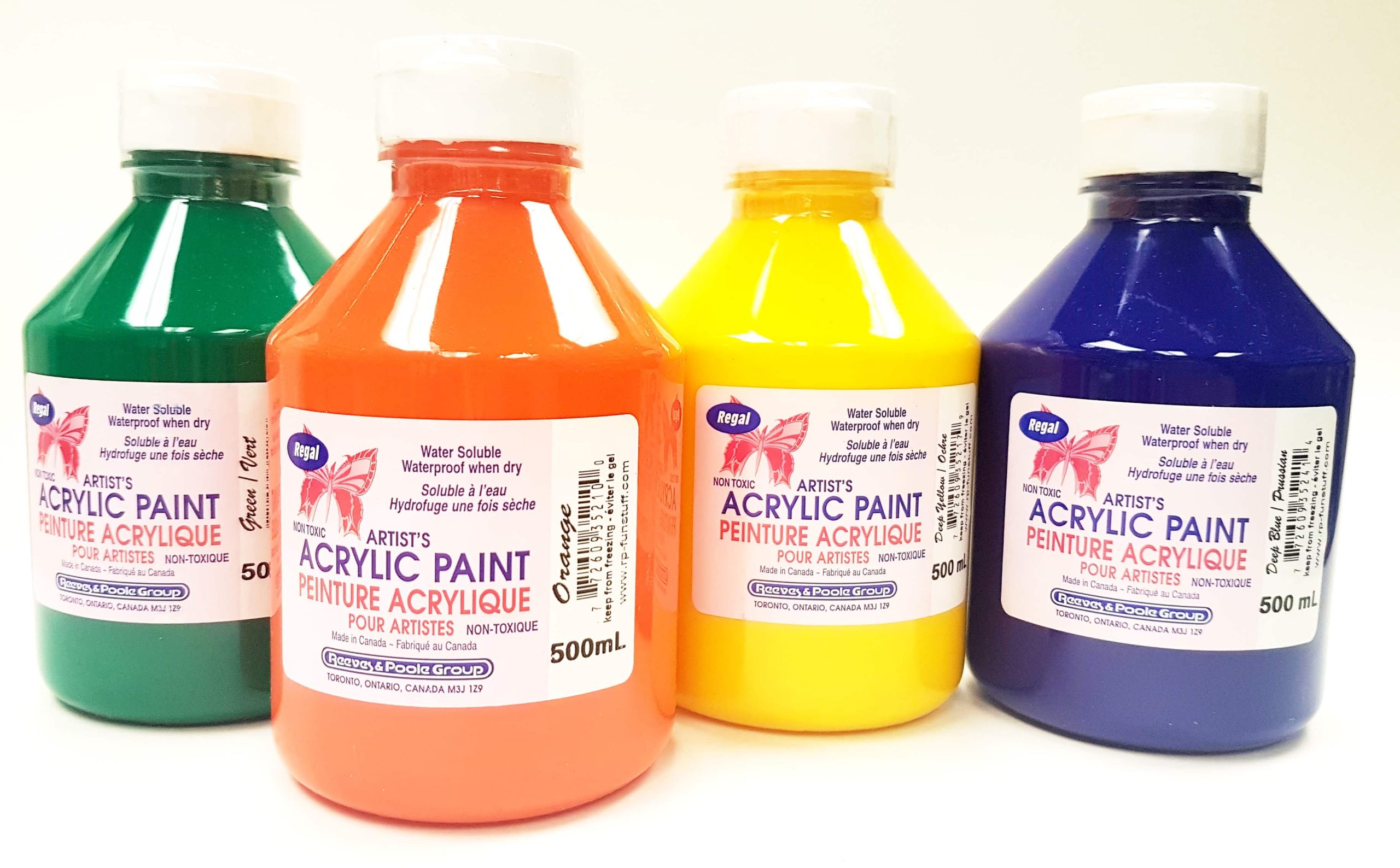 Non toxic, child friendly, student grade paint. Perfect for paper, cardboard, wood, clay, canvas and more. Available in 9 vibrant colours. 16oz bottles.