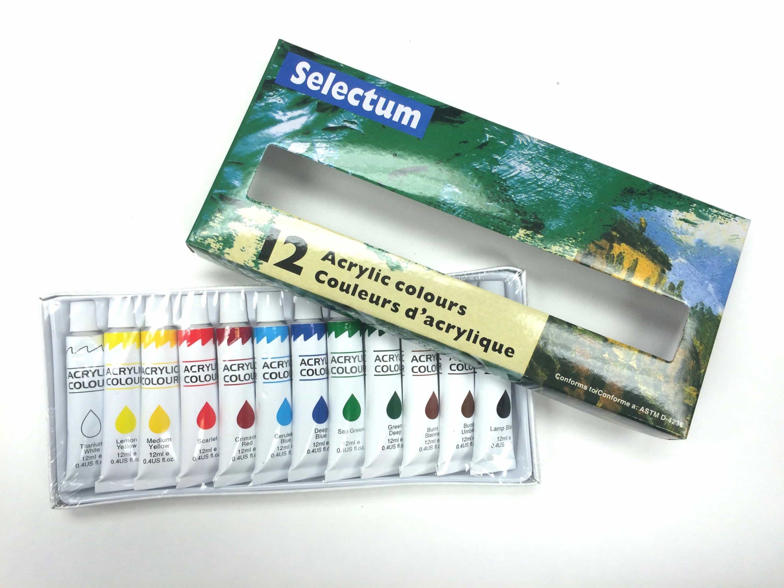 Set of 12 small tubes of beautiful acrylic paints