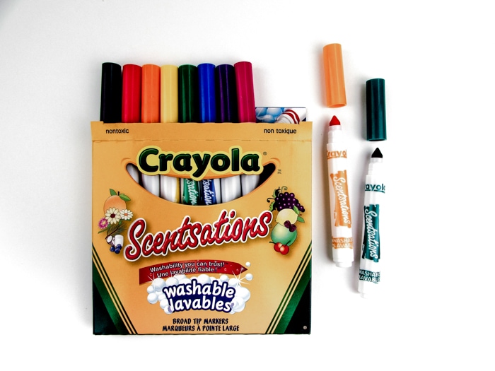 Washable non-toxic markers with a broad tip and 10 delicious scents.