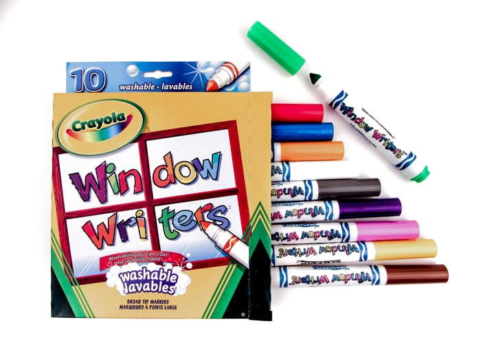 Washable, non-toxic markers can be used directly on windows and mirrors or on foil wrapping paper for a unique effect. 8 per package