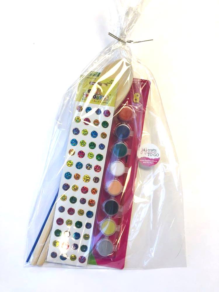 This kit includes: 2 Wooden Spoons, Sticker Strip, Paint Pot Set & a brush!
