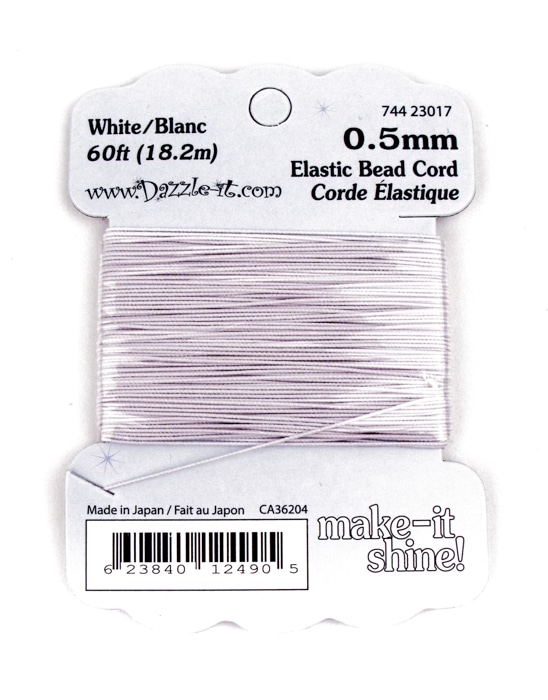 20 yd of white elastic thread. Can be used with even our smallest size bead.