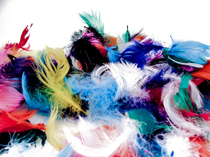 Assorted colours and sizes of marabou feathers. a perfect craft staple for almost any project. 100gm package