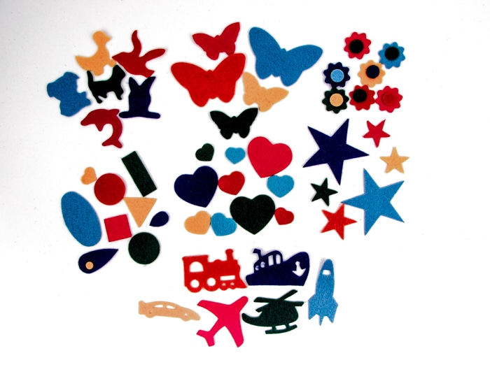 Assorted coloured felt pieces. Available in 8 different styles. Use with felt boards or glue to create beautiful collages. 48-100 pieces per pack