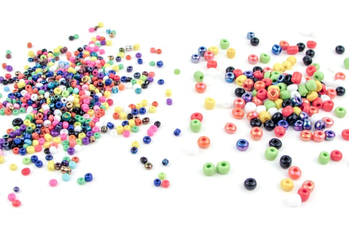 Available in 2 sizes, 2mm/.25kg, 4mm/250gm glass beads. Assorted colours per package. Metallic seed beads also available here, as well as glass bead sets here. Use with fishing wire, stretch cord or jewellery wire.