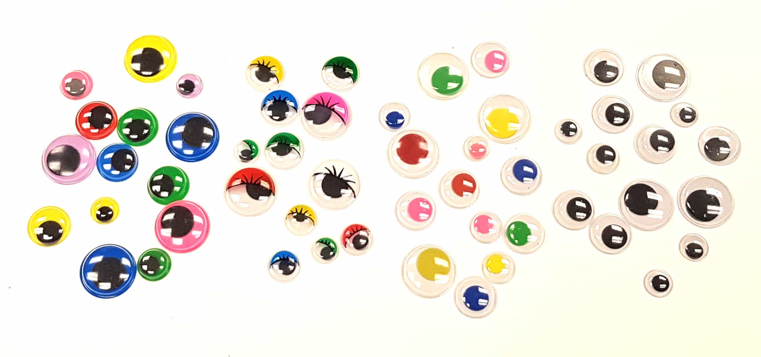Black and white or Coloured wiggling eyes. Comes in assorted sizes.
