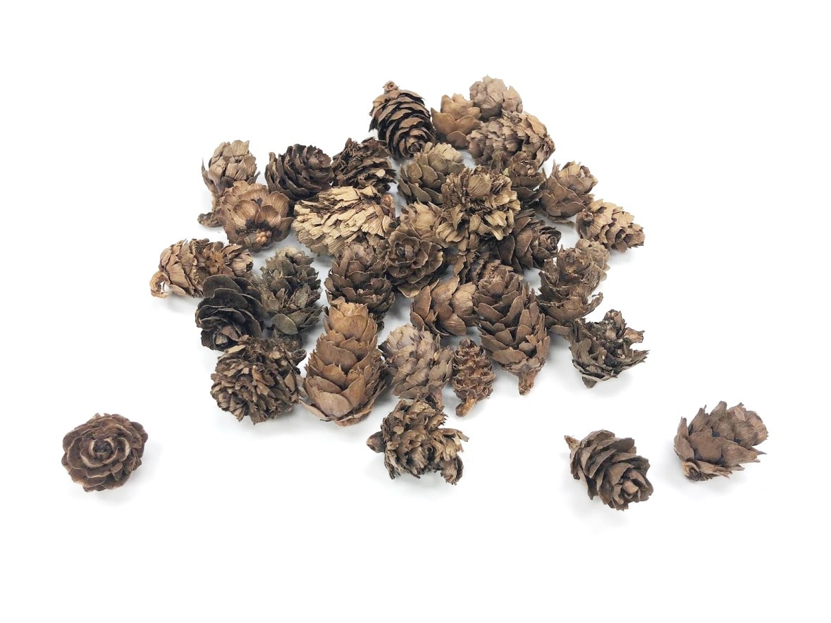 4.5 oz mini cones per pack, 2″ (approx) Pine Cones with approx 20-25 pieces per pack (size dependent)