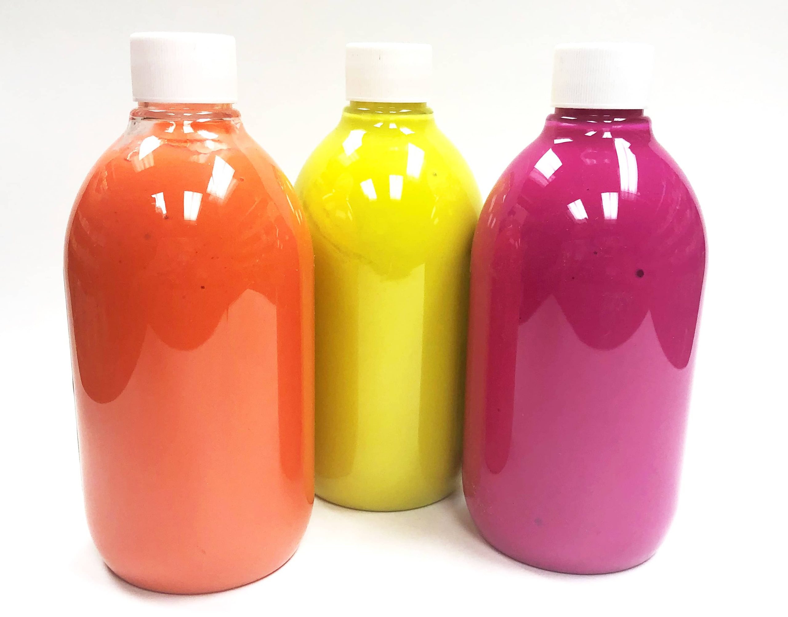 Non toxic, washable paint in 6 bright neon colours. 500ml bottle.