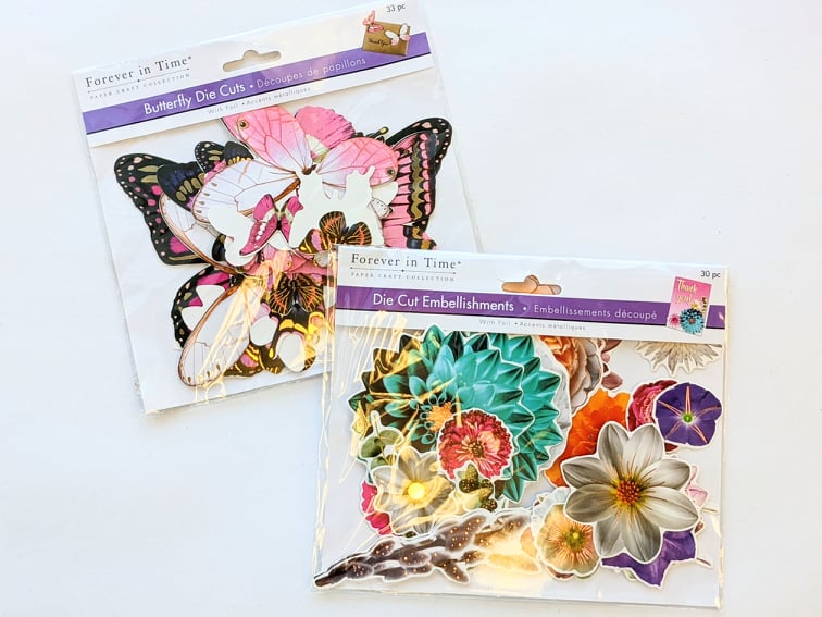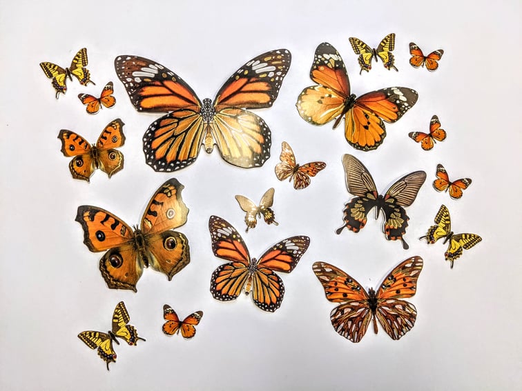 Orange paper Butterfly or Flower die cut outs, different sizes with gold foil accents
