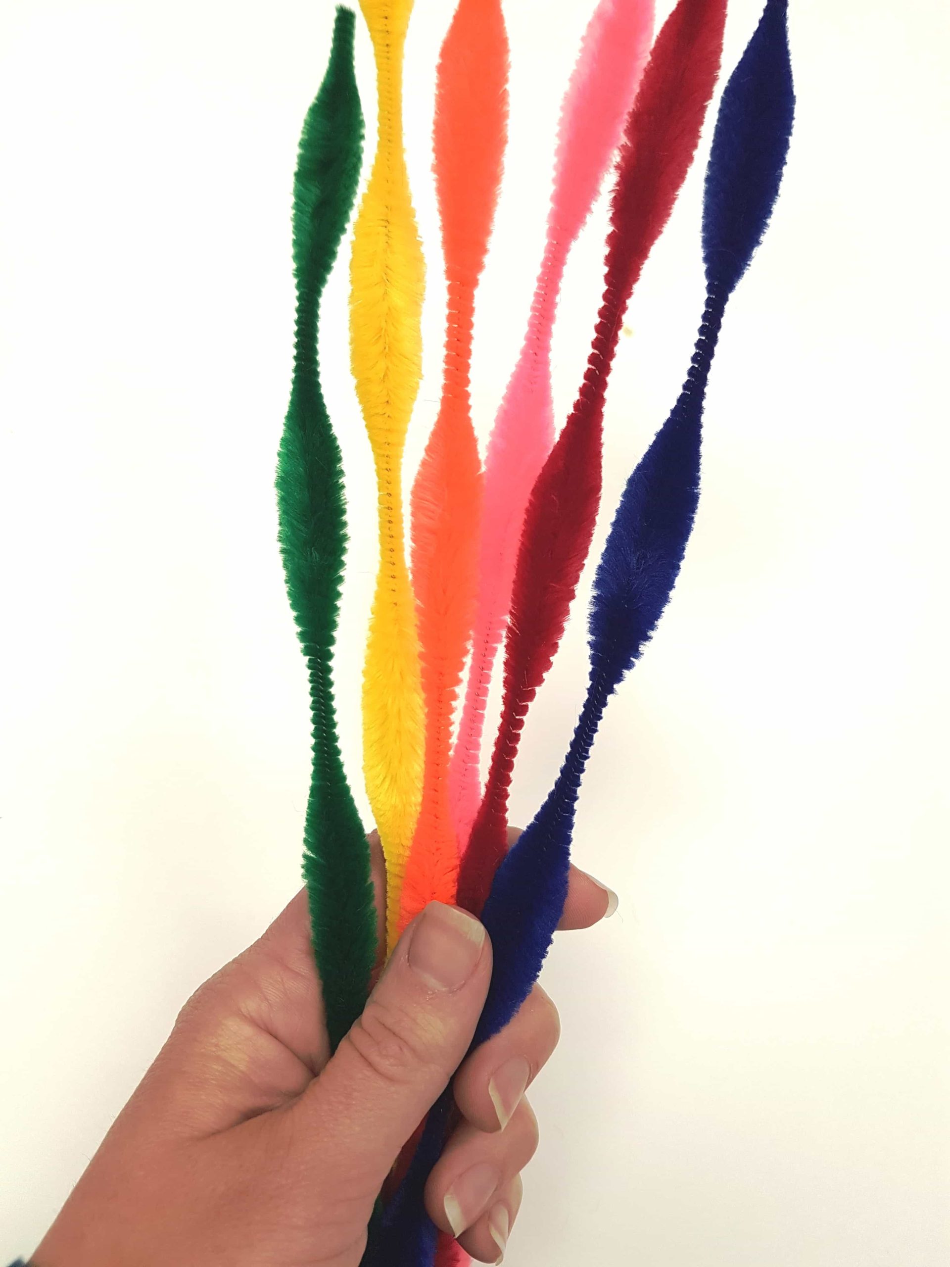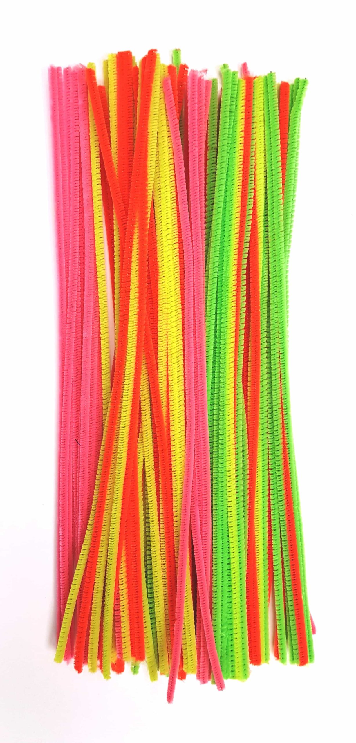 Multi-coloured chenille stems are a crafting staple. Available in regular, neon, bumpy or glitter colours. 100 per pack. Jumbo-sized stems are available in 50 assorted colours per pack. Bend them, twist them, or bead them. There are hundreds of creative ways to use them!