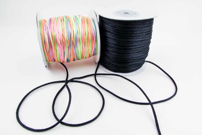 Rainbow or black coloured cord for a variety of projects. 100m rolls.
