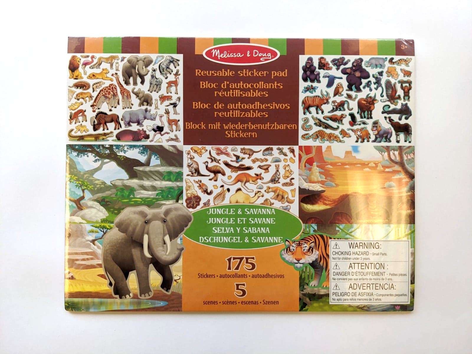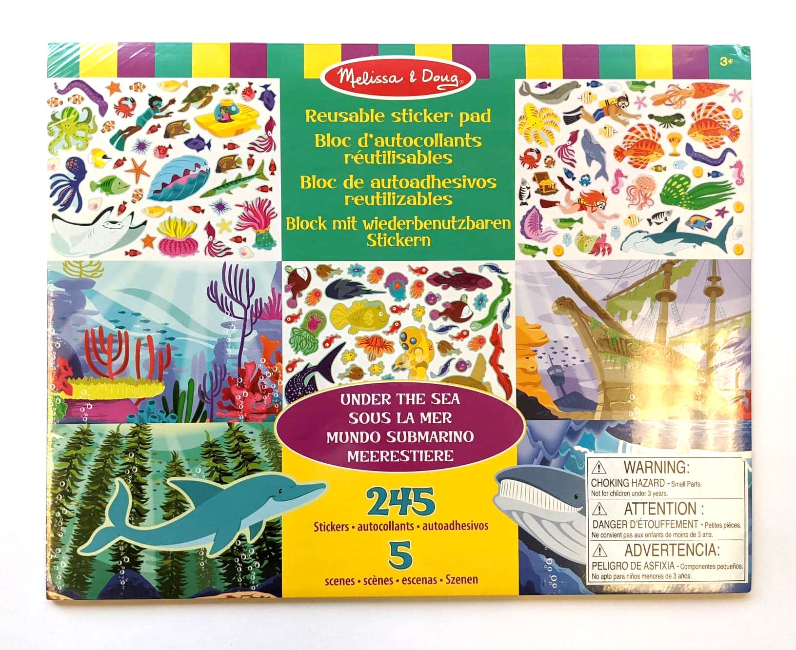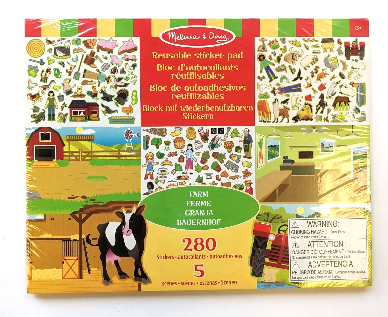 Melissa and Doug Reusable sticker pad comes with 5 different scenes and hundreds of reusable stickers! This is great for expanding imagination. 3 themes to choose from!