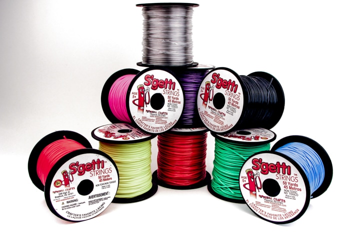 Round plastic lacing with stretch. 10 beautiful colours to choose from. 50 yards a spool.