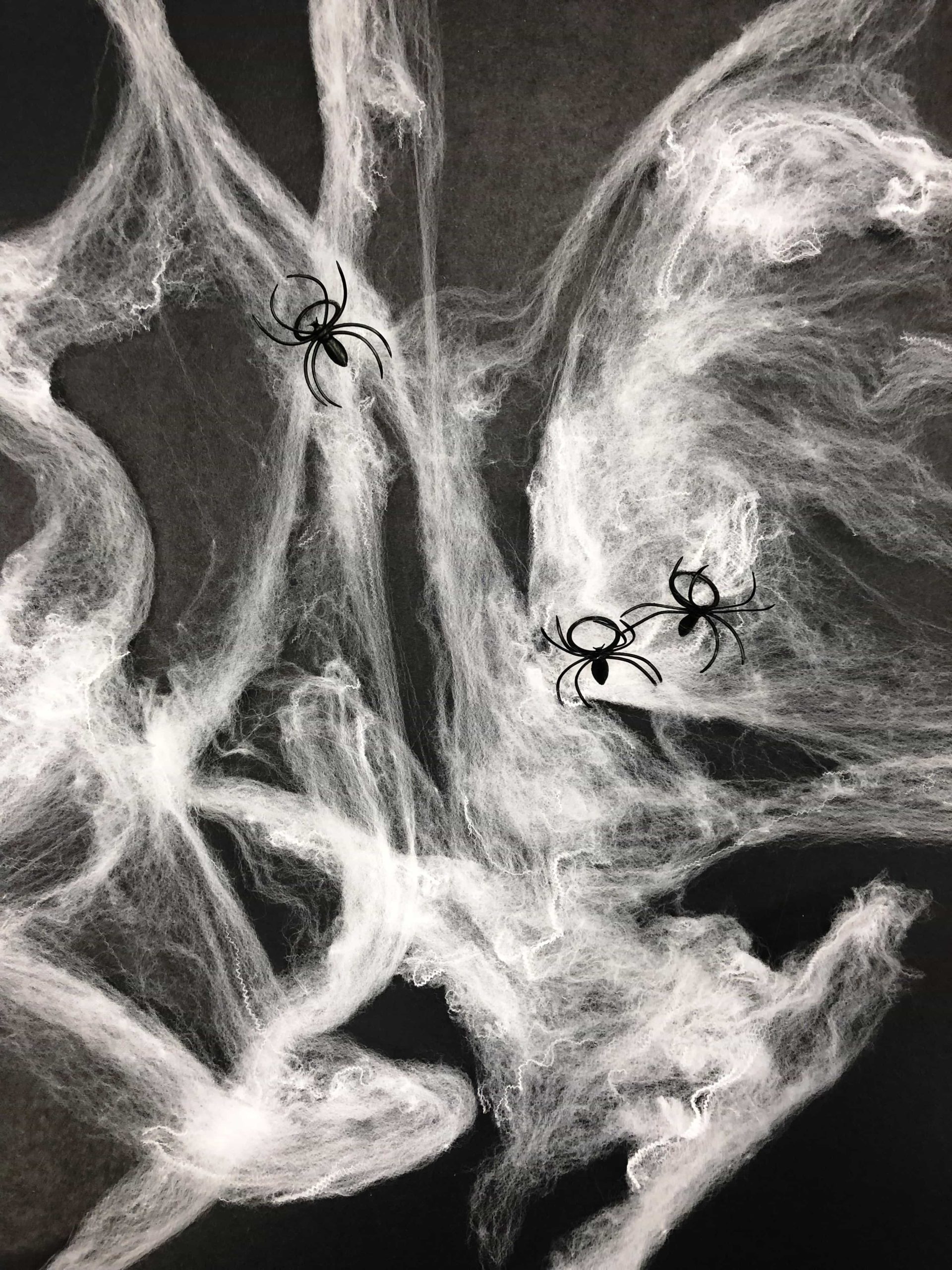 2 oz package of cotton ‘spider web’ perfect for decorating for Halloween!