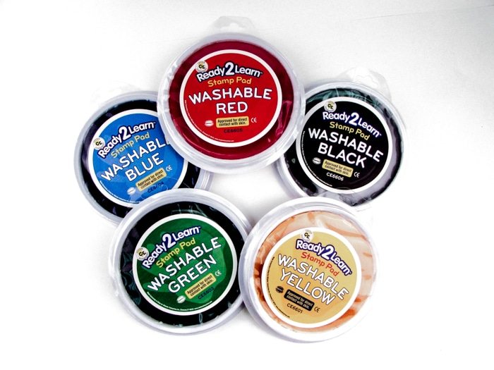 6” stamp pad with washable ink. available in 5 popular colours. Large enough to used with all of our stampers. Can even be used to make little hand prints!
