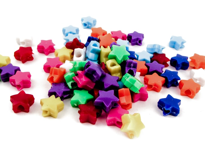 Colourful, plastic beads that can be used with elastic thread, fishing wire, hemp, leather