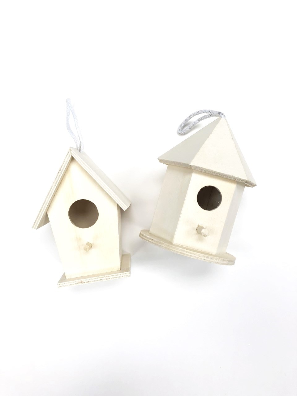 Ready to hang, adorable bird house 4.5″ x 3.5″. Perfect for decorating with acrylic paint, jewels, stickers and more! Sold individually.