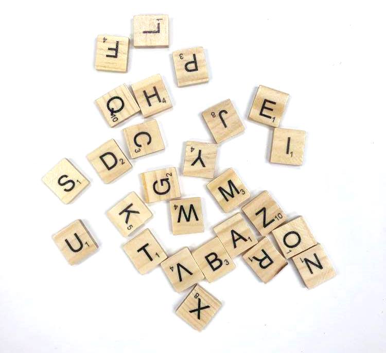 “Scrabble” style wooden tiles for crafting! 26 per package.