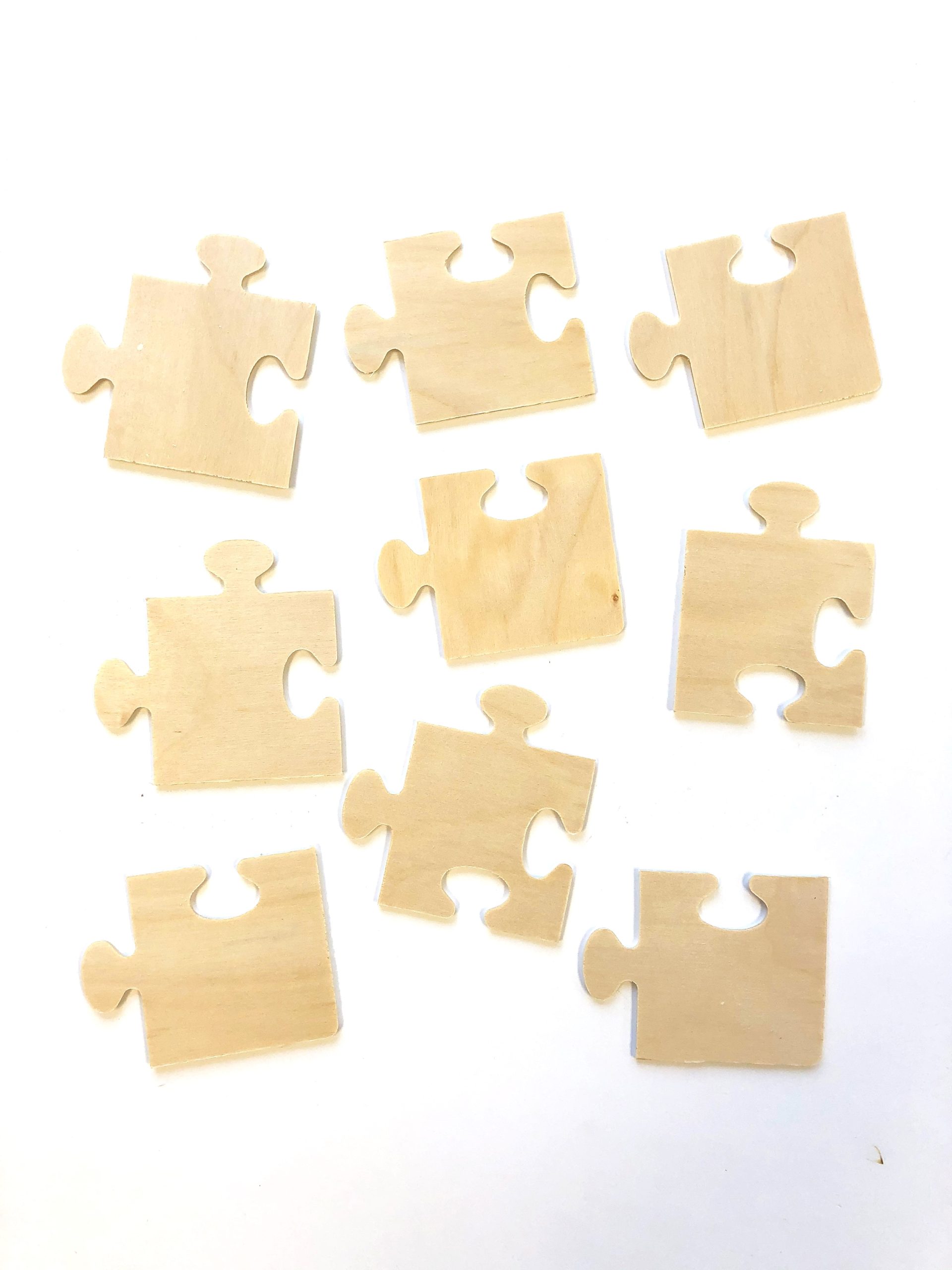 9 pieces per package that all fit together. Easy to decorate with paint or wood burn your own designs!