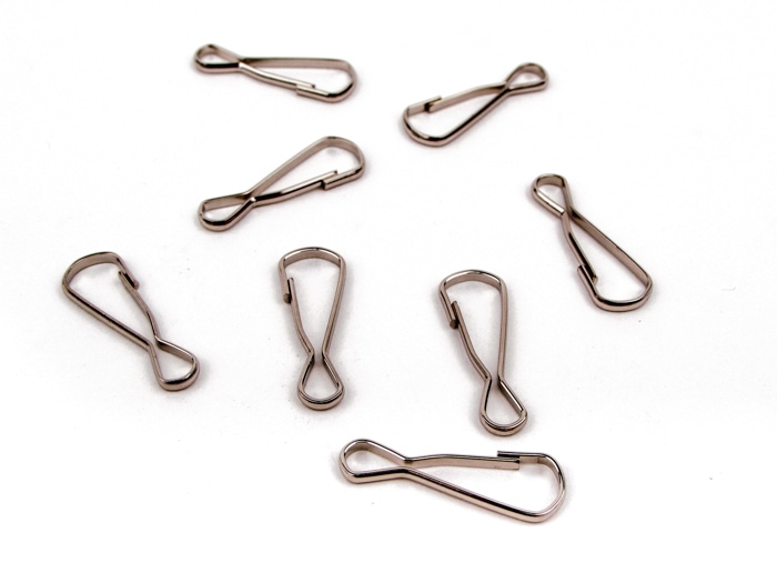 Metal hooks to attach items to lanyards, zippers and more. 100 per package